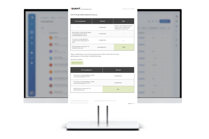 QUANT Ryzyko Operacyjne (QUANT RO) to kompletna odpowiedź na wymogi stawiane bankom w Rekomendacji M. Oferuje zaawansowane funkcje identyfikacji potencjalnych zagrożeń, narzędzia do precyzyjnej oceny ryzyka operacyjnego, a także efektywne mechanizmy redukcji ryzyka.